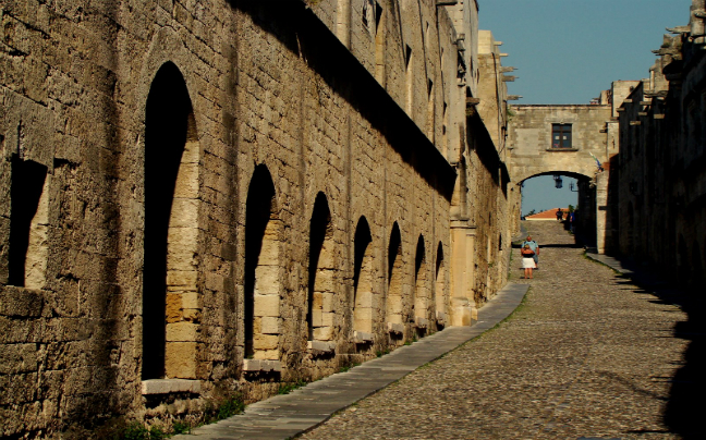 Η περιπλάνηση σας στα σοκάκια της Παλιάς Πόλης θα σας φέρει μπροστά στην Οδό των Ιπποτών, που είναι χτισμένη πάνω σε δρόμο της αρχαίας πόλης. Πρόκειται για την κεντρική οδό της Παλιάς Πόλης, πλάτους 6 μέτρων, όπου θα συναντήσετε και τα περισσότερα μεσαιωνικά κτίρια.